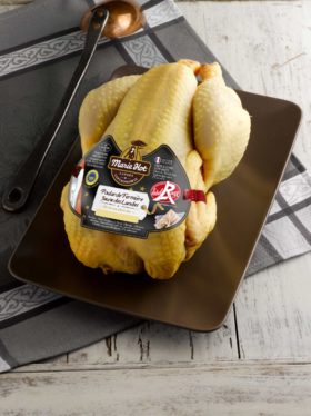 La dinde fermière est la plus connue et la plus traditionnelle des volailles de Noël ! De souche jaune à plumage noir, seules les femelles sont mises en élevage, car elles ont une chair moelleuse. En effet, la dinde est élevée en plein air, pendant 150 jours, et alimentée à 80% de céréales issues du terroir, complétées de verdure, graines et insectes.